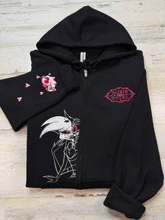 Embroidered full-zip sweatshirt featuring Angel on the right side and the HH logo on the left. The HH logo is also embroidered on the back. Fat Nuggets is embroidered on the right sleeve.