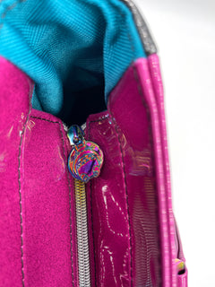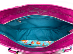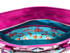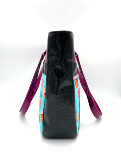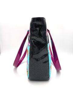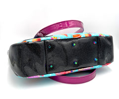 - Exterior is made with cotton woven, hot pink glitter vinyl and black glitter vinyl