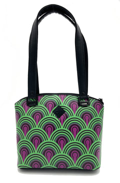 Checking into the Overlook Hotel? Don’t stay in room 237! This domed handbag features the iconic carpet design of Room 237.