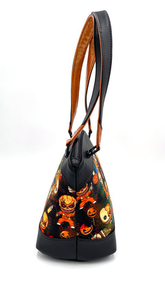 Celebrate your love for Sam with this terrifyingly cute domed handbag, featuring a custom Sam print and accented with high quality marine vinyl. The exterior is made from cotton canvas and marine vinyl. This one-of-a-kind bag has a custom Sam zipper pull in a glossy gunmetal finish. The hardware is all metal in a matte black finish.